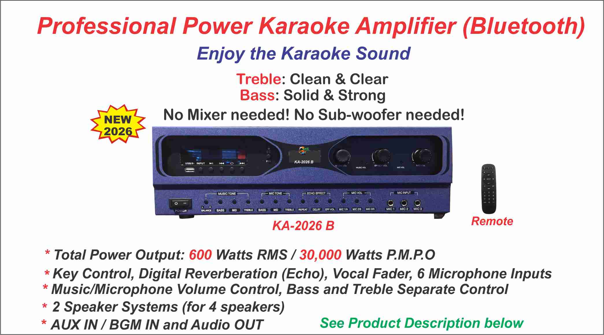 Pro. Power Karaoke Amplifier (Blue)